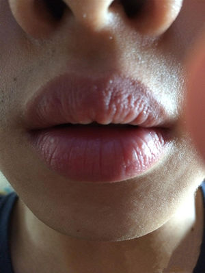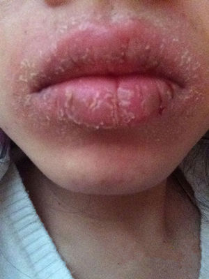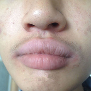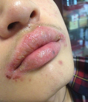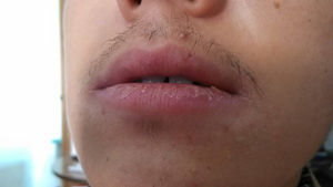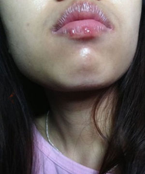 曾某患唇周口炎持续时间较长,病情累及嘴唇周围的皮肤,唇周口大面积脱屑、上下嘴唇水肿、覆盖白色鳞状皮痂。经在广州市南粤医药研究所附属医院口腔黏膜专科治疗2个疗程后上嘴唇基本没什么问题了,唇周口恢复正常曾某再巩固治疗一个月后痊愈。因为患者曾某路途远,没有再来医院复诊,只是电话联系医生,经医生了解情况认为己康复后停药。三个月后医院有回访,患者说没有再发过。