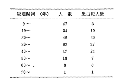 四、口腔白斑与吸烟的关系:
